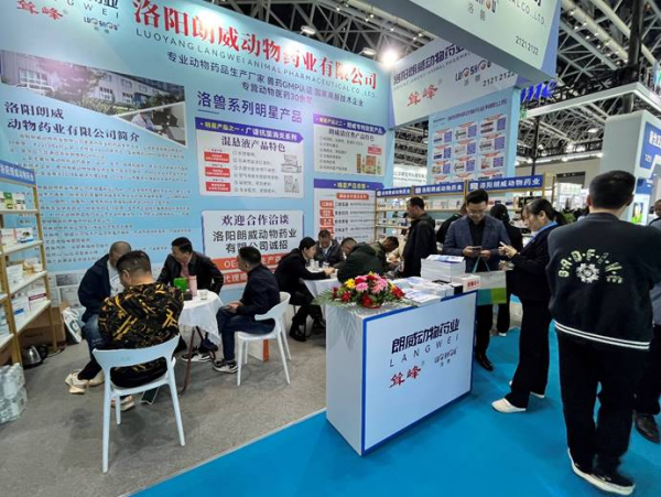 展會(huì )現場(chǎng):洛陽(yáng)朗威動(dòng)物藥業(yè)有限公司帶來(lái)的明星產(chǎn)品吸引了眾多同行業(yè)人士與觀(guān)眾參觀(guān)。